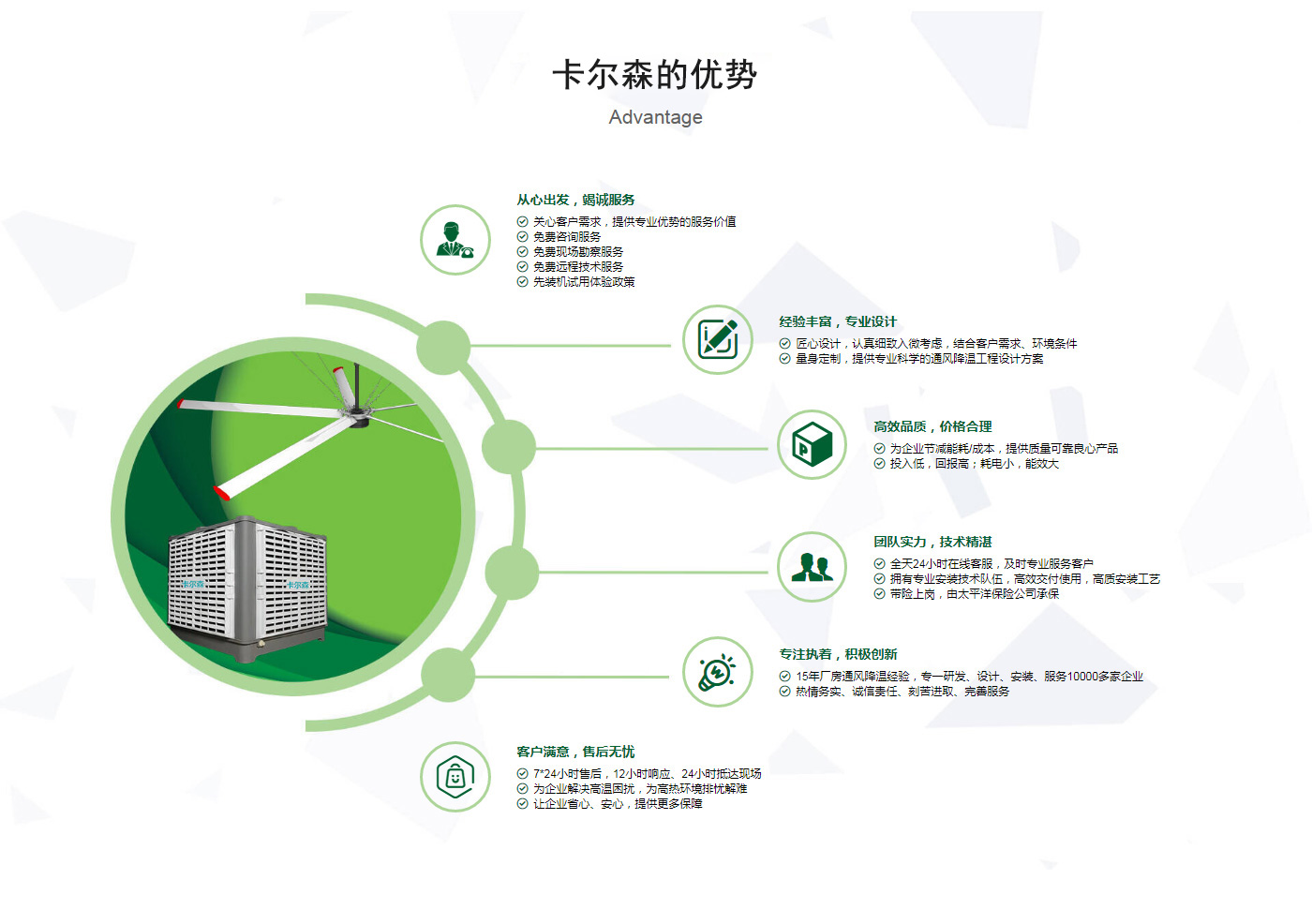 ??晉江市卡爾森機電設備有限公司是一家集設計、制作、銷售、安裝工業通風設備、中央空調、節(jié)能環(huán)保空調、脈沖除塵設備、環(huán)境凈化工程、等環(huán)保工程企業。并提供環(huán)境影響評價、環(huán)保工程總承包、環(huán)保工程設計、環(huán)保工程運營、環(huán)保工程成套設備等一站式服務。公司一直誠心服務于工業廠房的通風設施,我們的產品:“品種齊全、質量優(yōu)越”。根據客戶的需求精心設計,高質量的制造,力求使每個產品都達到合理耐用、節(jié)能環(huán)保。科學的設計和精美高品質的產品,完善的服務系統,加強售前、售中、售后服務,對顧客在使用商品中出現的各種問題及時解決,使顧客無后顧之憂。產品廣泛適用于各類型制造業、機械類、五金冶煉、食品、化工、電子、紡織、噴涂、娛樂以及服務等場所。我們秉承“質理過關、價格合理、交期準時、服務周到”而受到新老客戶的好評和信賴。我們堅持“客戶至上、質量上乘”為宗旨,努力工作,為您換來潔凈美好的明天。卡爾森愿以過硬的質量,良好的信譽同各界朋友一起開創更加輝煌的未來。